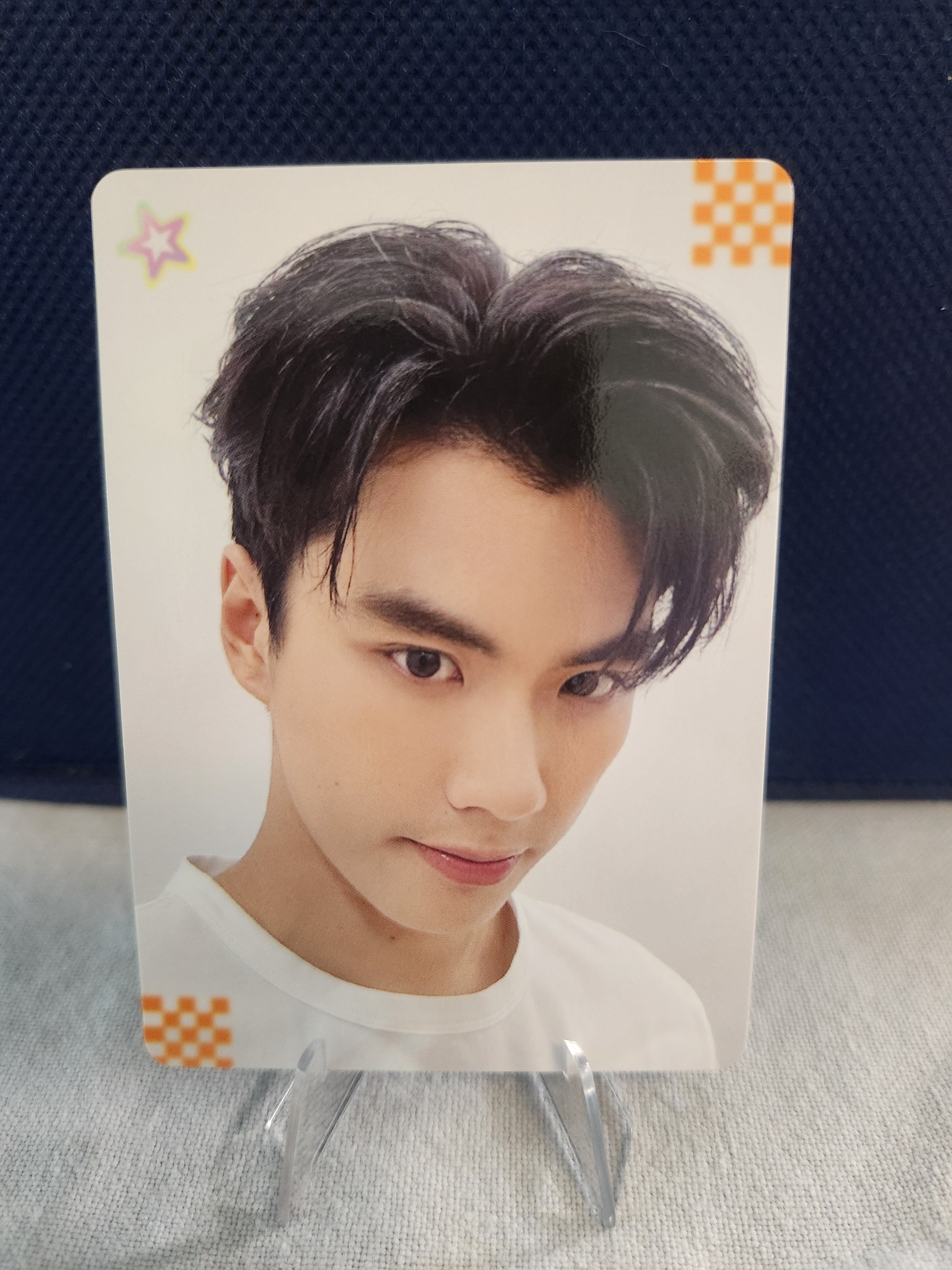 Ohm Pawat selfie card from GMMTV International Novel Festival Selfie Random Card collection (no longer available thru GMMTV). Cards are stored in sleeves and collection binders, only removed for photo.