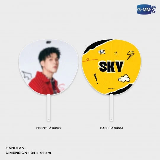 Plastic hand fan with a photo of Sky on one side and the name “SKY” on the other. Comes with a Smyle case that makes this fan even more adorable, perfect for hot weather and for events.
